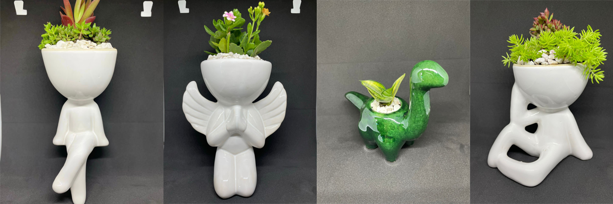 Maceta esmaltada en rosa, para colocar la plantita de su gusto. No incluye planta.